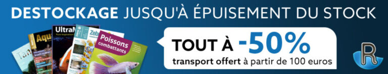 Vous l’avez peut-être vu dans la vidéo explicative de la suite de nos aventures, nous avons décidé de fermer notre petite boutique/librairie en ligne. Vous pouvez donc profiter d’une remise de 50% sur l’ensemble des livres et magazines, d’eau douce comme d’eau de mer. Pour couronner le tout, les frais de port sont offerts dès 100 € d’achat.