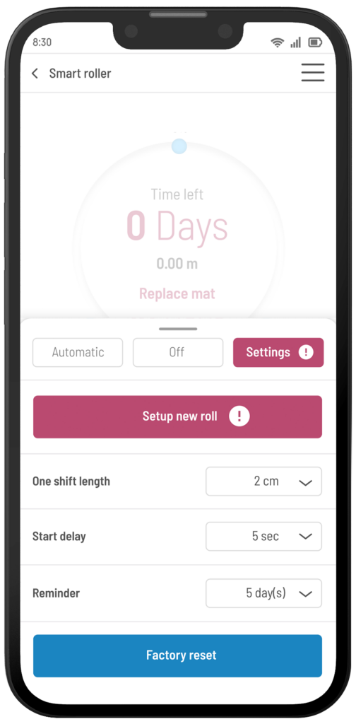 Bien entendu, il s’intègre à l’univers Smart Reef de Reef Factory, et vous pouvez garder un oeil sur l’état du Smart Roller depuis l’application centrale de la marque. Y apparaîtra la consommation du rouleau, la longueur restante et le nombre de jours d’autonomie avant le changement du média. Vous pouvez instaurer une alarme x jours avant la fin du rouleau pour anticiper l’achat d’un nouveau. Aussi, il est possible de jouer manuellement sur la rotation du moteur ainsi qu’instaurer une fréquence de rotation de x cm tous les y sec, ou alors, tout simplement le laisser fonctionner automatiquement. Une notification vous est également envoyée en cas de blocage du moteur.