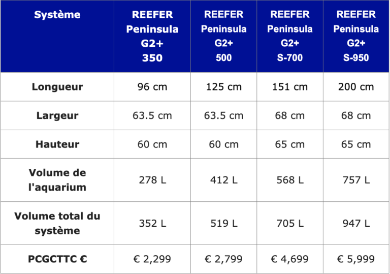 Retrouvez le détail de chaque modèle sur la page dédiée à cette nouvelle génération d’aquariums Red Sea Reefer G2+.