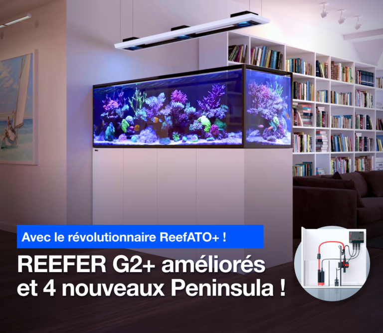 La gamme Reefer G2+ reprend l’ensemble des améliorations apportées aux Reefer G2, mais sont aussi équipés du tout nouveau système de compensation d’évaporation, le ReefATO+. Celui-ci détecte également les éventuelles fuites et dispose d’un capteur de température. Le tout, connecté à l’univers Reefbeat, qui vous permet d’un coup d’oeil sur votre smartphone d’avoir un oeil sur ces éléments et d’être notifié en cas d’anomalie. De quoi profiter encore plus pleinement d’un aquarium récifal chez soi.