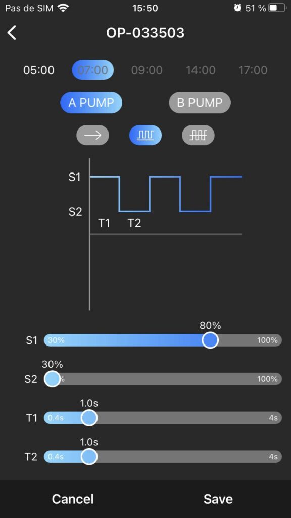 Le ou les boîtiers connectés à l’application, vous pourrez alors créer votre programme de brassage, sur la journée. C’est le + de cette option : le brassage peut être différent au cours de la journée, et vous pourrez les scénarios comme bon vous semble.