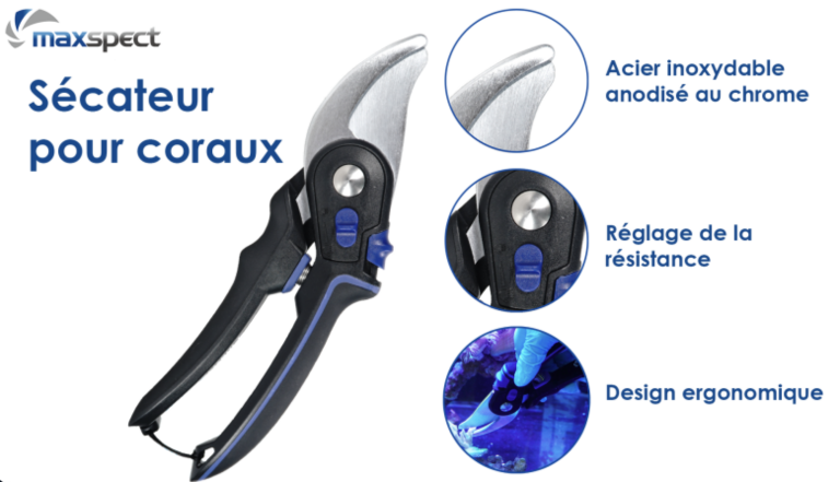 Pour les amateurs de bouturage, ou tout pour simplement entretenir et tailler comme l’on souhaite ses colonies coralliennes, Maxspect propose désormais un sécateur adapté à l’eau de mer.