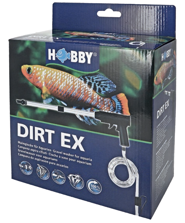 Le Hobby Dirt Ex est un accessoire pratique pour aspirer les sédiments, dans votre aquarium ou décantation. Reprenant les classiques de la « cloche à sédiment », on remarque cependant la buse d’aspiration qui n’est pas sans rappeler nos aspirateurs domestiques, qui « concentre » l’aspiration et permet d’emporter les sédiments plus lourds, et la gachette de mise en service. Une molette permet également de régler facilement le débit d’aspiration.