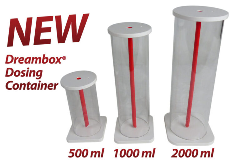 Les Royal Exclusiv Dreambox Dosing Container sont fabriqués en PVC et acrylique haute qualité, en Allemagne. Ils disposent d’un tuyau central de 10 mm avec le bas biseauté pour aspirer le liquide jusqu’au fond du réservoir. Ils conviennent pour toutes les solutions de dosage (éléments traces, bailing, eau de chaux et avec pompe doseuse…