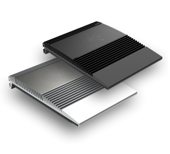 Premier élément : le design. Il s’agit d’un rampe de 22,7 x 16,6 x 3,5 cm, avec une accroche par des vis à l’arrière. Son corps en aluminium est disponible en noir ou argenté. Il intègre un refroidissement par ventilateur annoncé comme silencieux, sous la partie perforée pour permettre les flux d’air. L’arrière est crantée pour augmenter la surface de refroidissement, un élément crucial pour garantir la durée de vie des cellules LED.