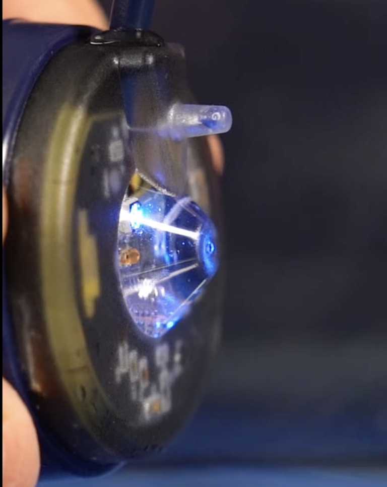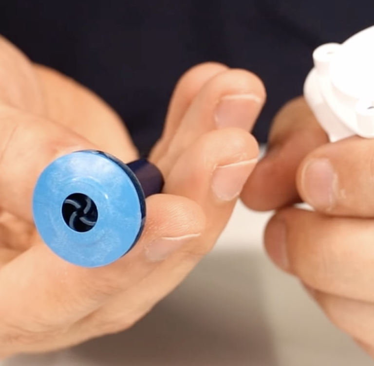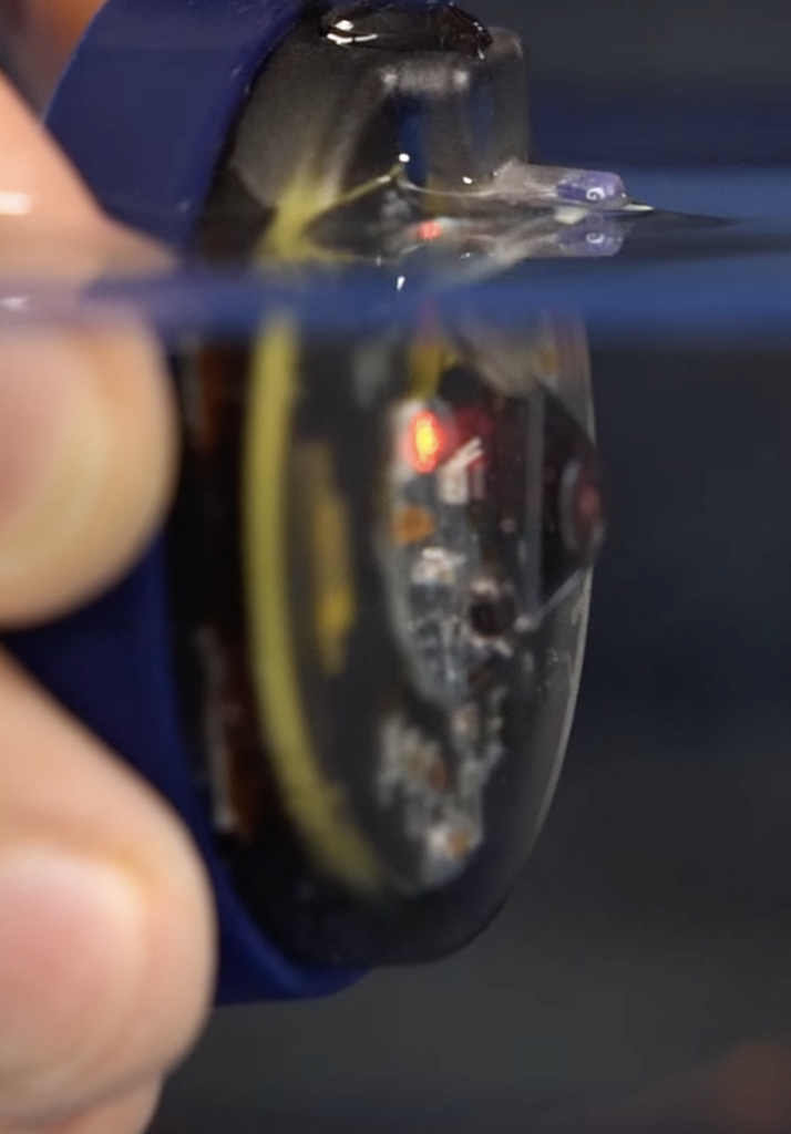 Enfin, pour protéger le capteur de l’environnement lumineux et réduire les chances d’obstruction, le tout est recouvert d’un cache en plastique percé de part et d’autre pour laisser passer l’eau.