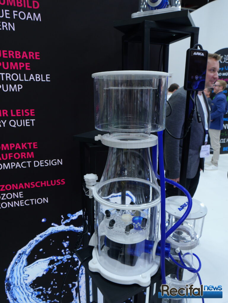 Une nouvelle gamme de 3 écumeurs arrivent chez Arka, les My Reef Skimmer pour aquariums jusqu’à 700 L (consommation maximale : , 1200 L et 2200 L. Ceux-ci sont équipés de pompes DC, pilotables depuis un boîtier externe. Elles disposent d’une fonctionnalité « nourrissage » et « arrêt 10min » pour éviter d’écumer ou de s’emballer lorsque l’on distribue la nourriture, et pour l’entretien. La prise d’air de la pompe se fait dans la couronne à la jonction corps de l’écumeur / godet, qui fait aussi office de silencieux.