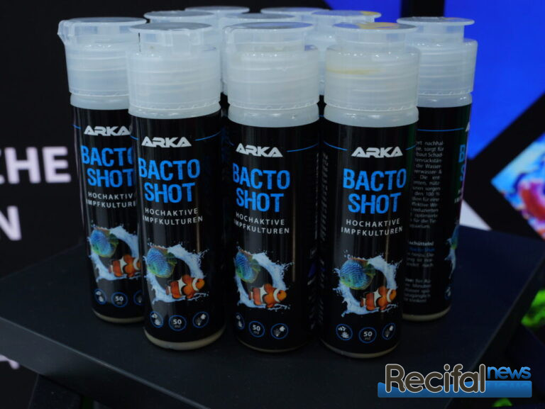 Un nouveau produit arrive : le Bacto Shot. Les bactéries épuratrices de l’eau sont l’une des clés de réussite de nos aquariums, et il se peut qu’une perturbation déséquilibre leur population : changement d’eau, nettoyage du sable, nettoyage des roches pour lutter contre des algues, maintenance du refuge, traitement… Pour assurer une flore bactérienne efficace, Arka a développé Bacto Shot, une solution de bactéries et d’un support de développement naturel. Son utilisation est simple : secouer, verser ! 50 mL sont conseillés pour traiter 150 L d’eau de l’aquarium. Les bactéries ajoutées vont consommer directement les nutriments présents dans l’eau et autres particules en suspension. Leur activité résulte en une eau plus propre chimiquement, et cristalline.