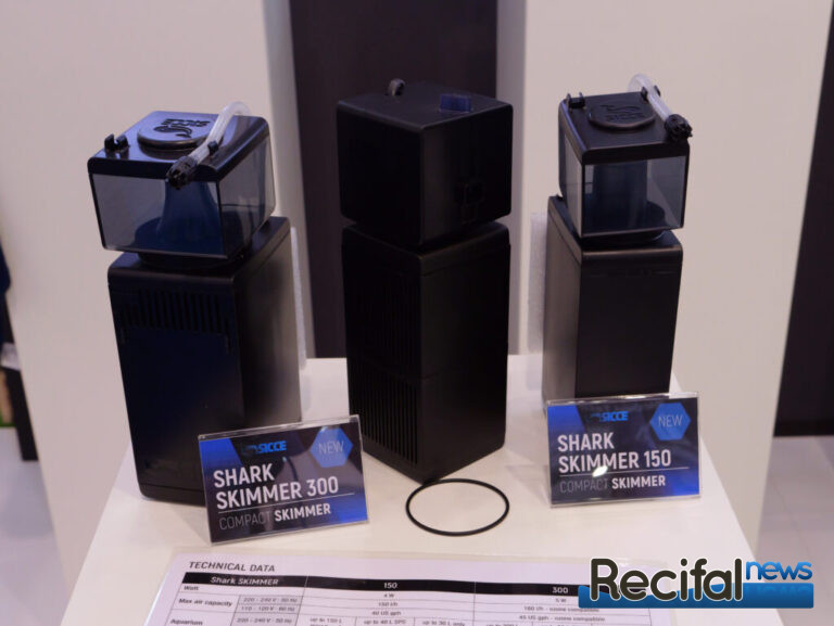 - Le Shark Skimmer 300 : pour aquariums de 50 à 300L selon la charge organique, dispose d’une aspiration de surface, consommation de 5W, débit d’air maximal : 180 L/h, compatible avec une injection d’ozone.
