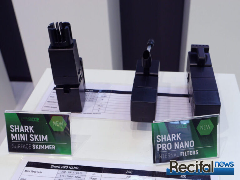 - Deux modèles de filtres internes complètent la gamme « Shark Pro » les Nano 250 et 320, correspondant à leur débit maximal respectif. Ils reprennent les bases de la gamme : un design « carré », avec des cassettes superposables, une buse directionnelle ou dispersive, une fixation par aimant. Ils consomment 5,5 et 6 W. Sicce conseille le Shark Nano 250 pour des aquariums de 40 à 50L, et le 300 de 60 à 75 L.