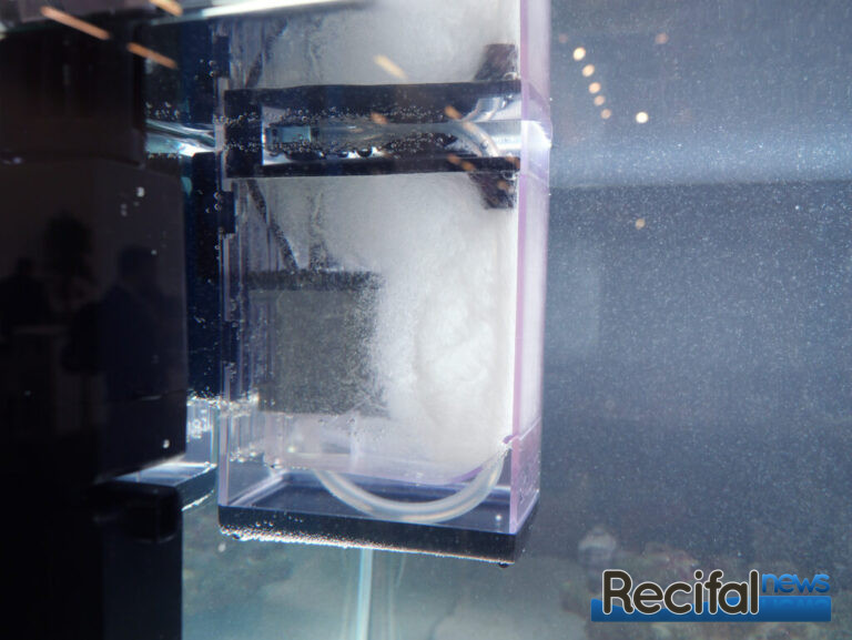 Sur le Shark 300, le système de « silencieux » sur la prise d’air est intégrée dans le couvercle de l’écumeur pour réduire les « surplus » visuels extérieurs à l’appareil. Sur le modèle 150, le silencieux se fait simplement grâce à la longueur du tuyau d’aspiration. Le tuyau de prise d’air se clipse simplement sur le couvercle, ce qui évite de le voir pendre et qu’il gêne au quotidien.
