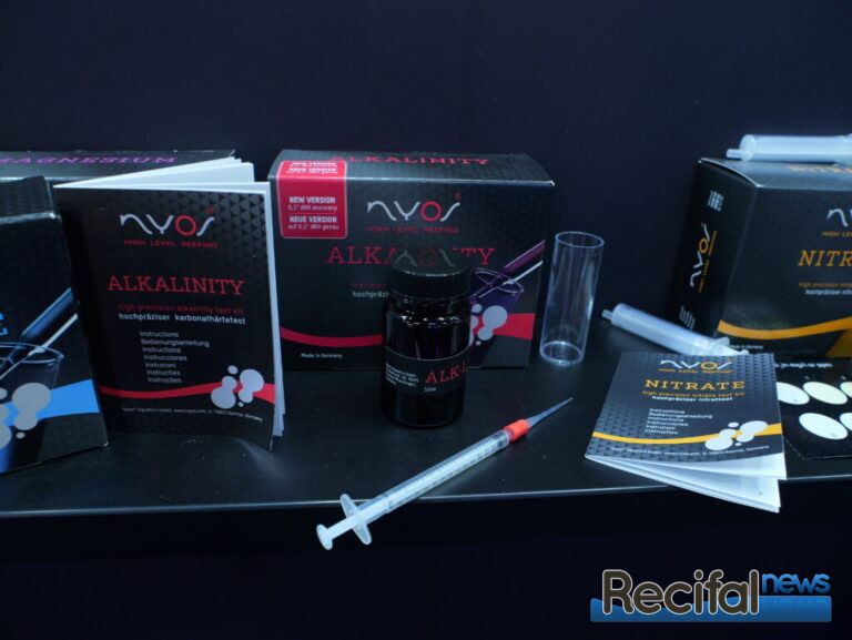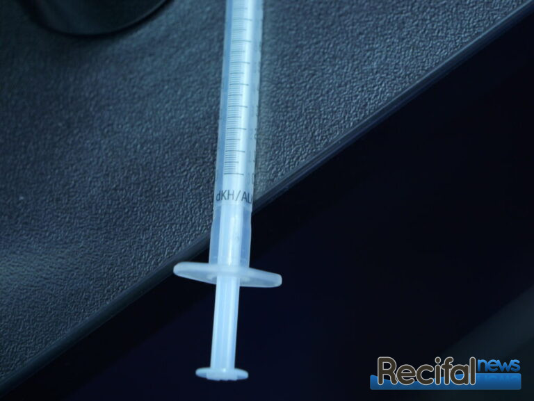 C’est l’un des tests réalisé le plus régulièrement, et pour raison, les coraux ont besoin d’une bonne alcalinité pour former leur squelette. Le nouveau test Nyos Alcalinité rend la chose la plus simple possible : un seul réactif, et une seringue spécialement graduée pour ! En effet, fini la conversion volume de réactif utilisé ou restant dans la seringue => degrés d’alcalinité, ici, la seringue donne directement la valeur en dKH ! Plus de raison de se tromper.