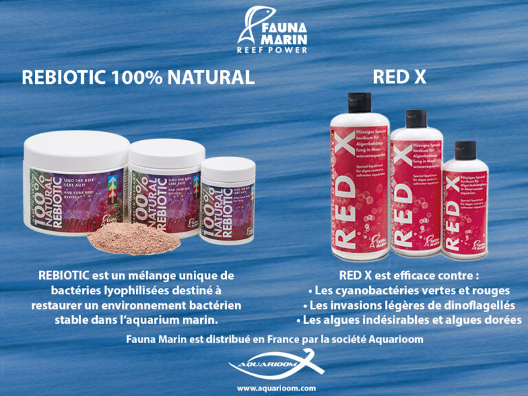 La partie haute du bac est totalement dépourvue de Derbesia, en revanche, comme l’indique la photo, la cyano a totalement recouvert le sol du bac. Je décide de laisser encore quelques jours pour tirer au maximum sur l’élimination des algues restantes et je commence à plancher sur le plan numéro 2, l’élimination de la cyano. Celle-ci est apparue je pense suite aux concentrations fluctuantes de NO3 et PO4 du bac suite à la mort de la Derbesia qui a laissé un champ nu. En parlant de vivant, je ne remettrais pas des bactéries dans le bac ? Voila une vraie question et je me retrouve à échanger avec Patoche des heures entières. Je vous assure, je fais court ici, mais j’ai des kilomètres de discussions avec lui dans mon Discord, et ce fut très important de partager avec lui ainsi qu’Axel et Seb sur la progression du traitement et l’avenir du bac. Que faire après ? J’ai décidé d’utiliser un dernier produit, le RedX de Fauna Marin. Après tout, je n’ai jamais été déçu de leurs produits, je connais presque la raison de cette cyano et je prévois de réintroduire de bonnes souches de bactéries. Tiens, en plus je vois que Fauna Marin suggère leur produit ReBIOTIC. C’est parti pour préparer la suite de l’histoire. Le plan est le suivant :