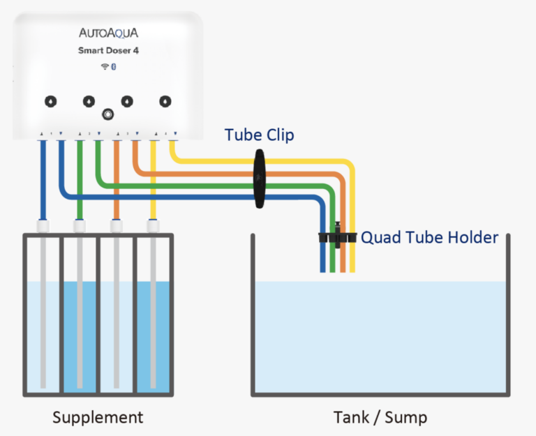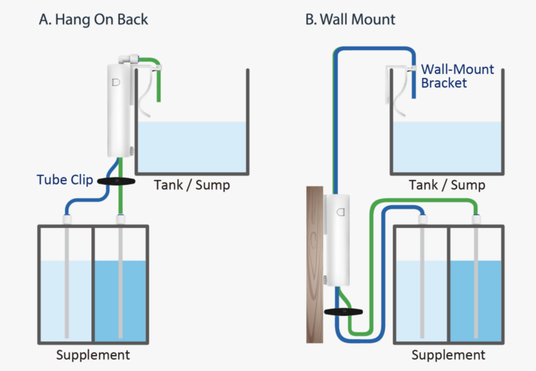 Les Smart Doser 2 et 4 d’AutoAqua se distinguent par leur format plat (35 mm d’épaisseur). Elles disposent respectivement de 2 et 4 voies de dosage. Le format compact permet une installation facile sur un support (à l’intérieur ou sur une face du meuble par exemple, et même directement sur la vitre du bac pour le modèle 2 voies !). Ces pompes péristaltiques ont une aspiration sur une longueur jusqu’à 610 cm de tuyau, avec un débit maximal de 21 mL/min.