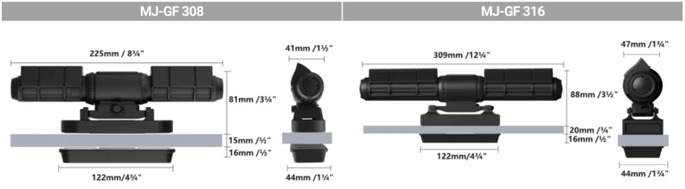 MJ-GF 316 : Dimensions (Longueur x épaisseur x hauteur) : 309 x 88 x 47 mm / Consommation max : 45 W / Débit max : 16 000 L/h / Volume d’aquarium recommandé : 100 – 1000 L / Epaisseur maximal de verre : 20 mm / Prix moyen constaté : 199 €