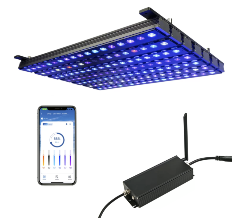 Les Orphek OR4 sont donc de la dernière génération développée par la marque. Elles s’intègrent dans l’esprit ‘iCon Sun and Moon », comme la récente Natura iCon. Le but : recréer un cycle d’éclairage au plus proche de la nature, avec la possibilité de simuler un cycle jour/nuit correspondant à la localité de votre choix. Idéal pour réduire le stress des habitants du bac, et stimuler les processus naturels comme la reproduction. Cela est rendu possible grâce à la capacité de régler l’intensité d’éclairage du jour de 1 à 100% et lunaire de 0,06 à 1%.