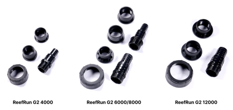 Côté installation, les Red Sea ReefRun G2 sont livrées avec un kit d’adaptateurs en unités métriques et américains pour s’adapter à tout type de tuyauterie. Le câble entre la pompe et le régulateur de débit est long de 150 cm, et celui du régulateur de débit à la prise d’alimentation mesure 180 cm.
