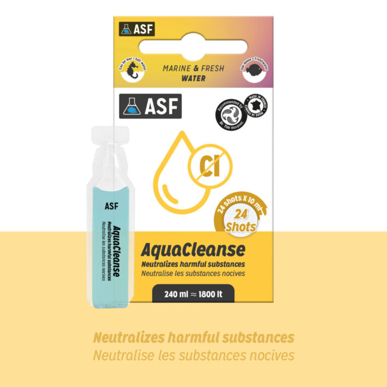 - AquaCleanse : à utiliser lors des changements d’eau, il élimine les chloramines, le chlore, les métaux lourds, l’ammoniac et différents polluants de l’eau de conduite
