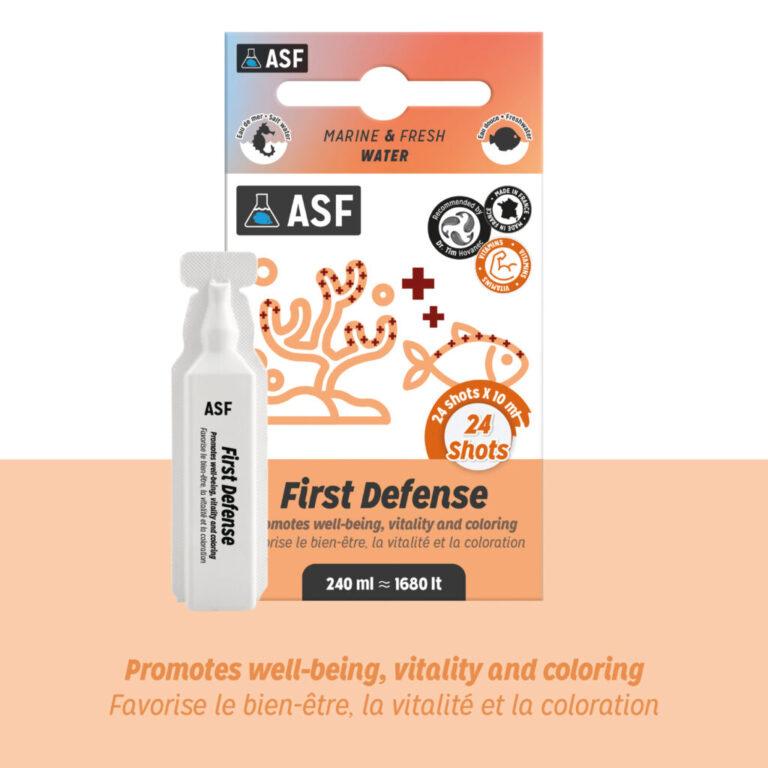- First Defense : cocktail de vitamines, antioxydants et autres molécules réduisant le stress des poissons et protectrices de leurs muqueuses