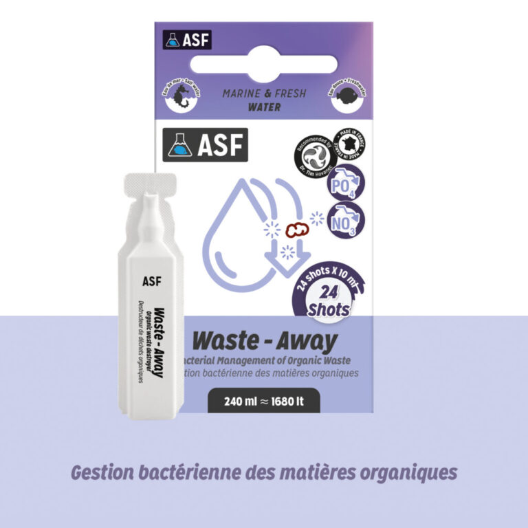 - Waste-Away : bactéries consommant les déchets organiques comme le surplus de nourriture, les excréments et différentes molécules produites par coraux, poissons et autres animaux présents dans l’aquarium