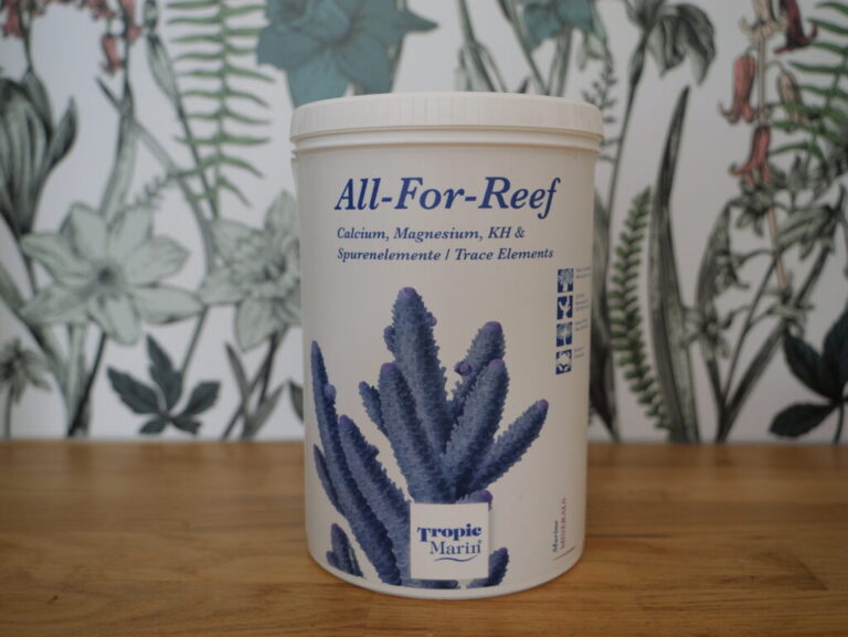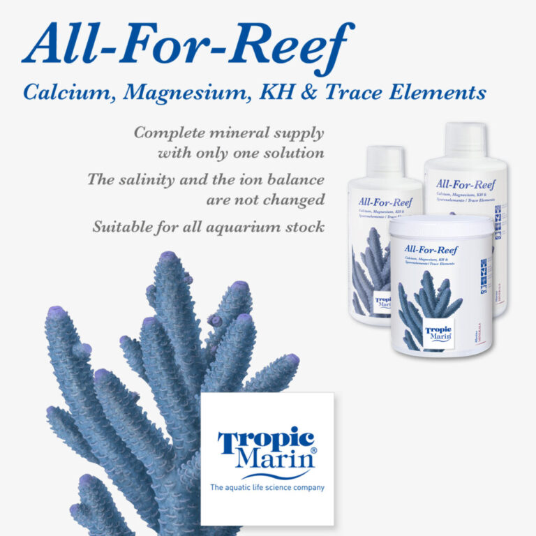 – A mix of dissolved minerals as found in natural sea water to keep the good ionic balance and density. It is called “salt without salt” solution as it contains minerals in powder but NO “salt” as sodium chloride. This solution contains magnesium, but you can add it separately if you see that its concentration drops in your tank.