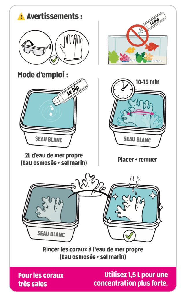En cas de coraux plus touchés, pour des effets renforcés du dip, vous pouvez réduire le volume d’eau à 1,5L.