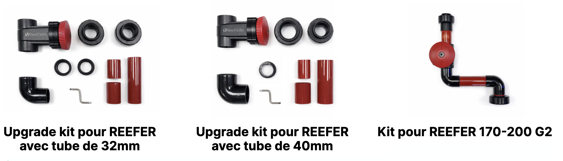 - Un kit pour les Reefer (et aquariums d’autres marques) avec un tuyau de descente en 40 mm